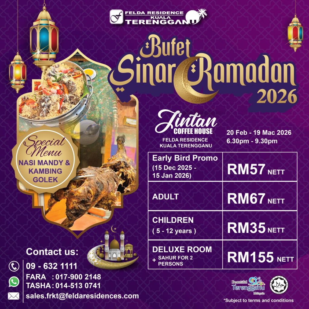 “Enjoy Early Bird Ramadan Buffet at RM57 nett! Limited time: 15 Dec 2025 – 15 Jan 2026. Book now for an unforgettable dining experience!”